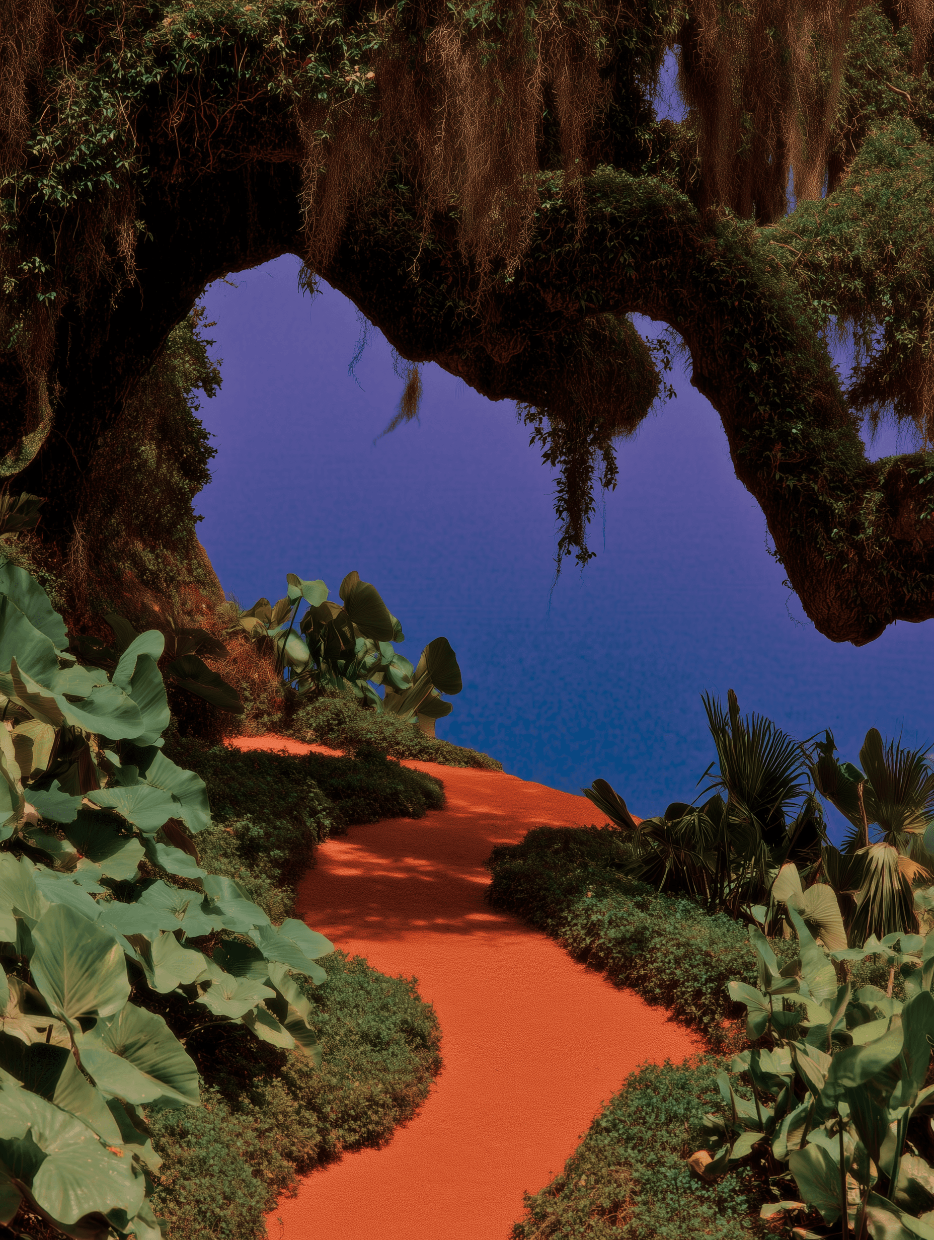 This personal project showcases a series of AI-generated explorations created in Midjourney. The intent was to move beyond conventional photorealism, experimenting with saturated color palettes and pronounced textural effects. These images function as studies in stylized world-building, focusing on the dramatic interplay between highly detailed flora, vibrant color fields, and distinct surface grain. This work aims to unlock unconventional visual aesthetics for future digital environments.